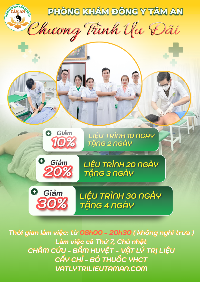 Đông Y Tâm An là phòng khám có chương trình hỗ trợ TỐI ƯU CHI PHÍ bằng các chương trình ưu đãi dành cho khách hàng mỗi tháng.