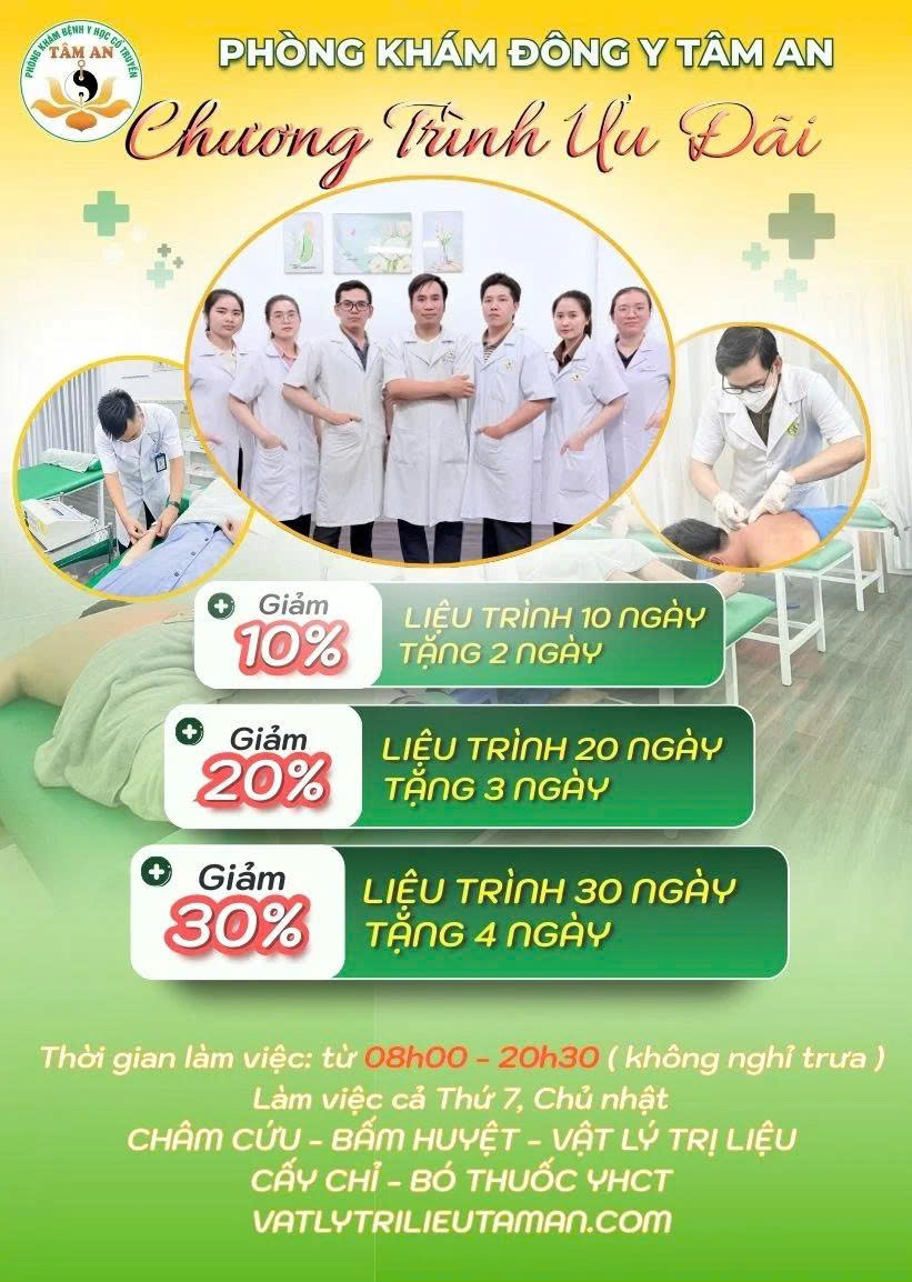 Đông Y Tâm An là phòng khám có chương trình hỗ trợ TỐI ƯU CHI PHÍ bằng các chương trình ưu đãi dành cho khách hàng mỗi tháng.
