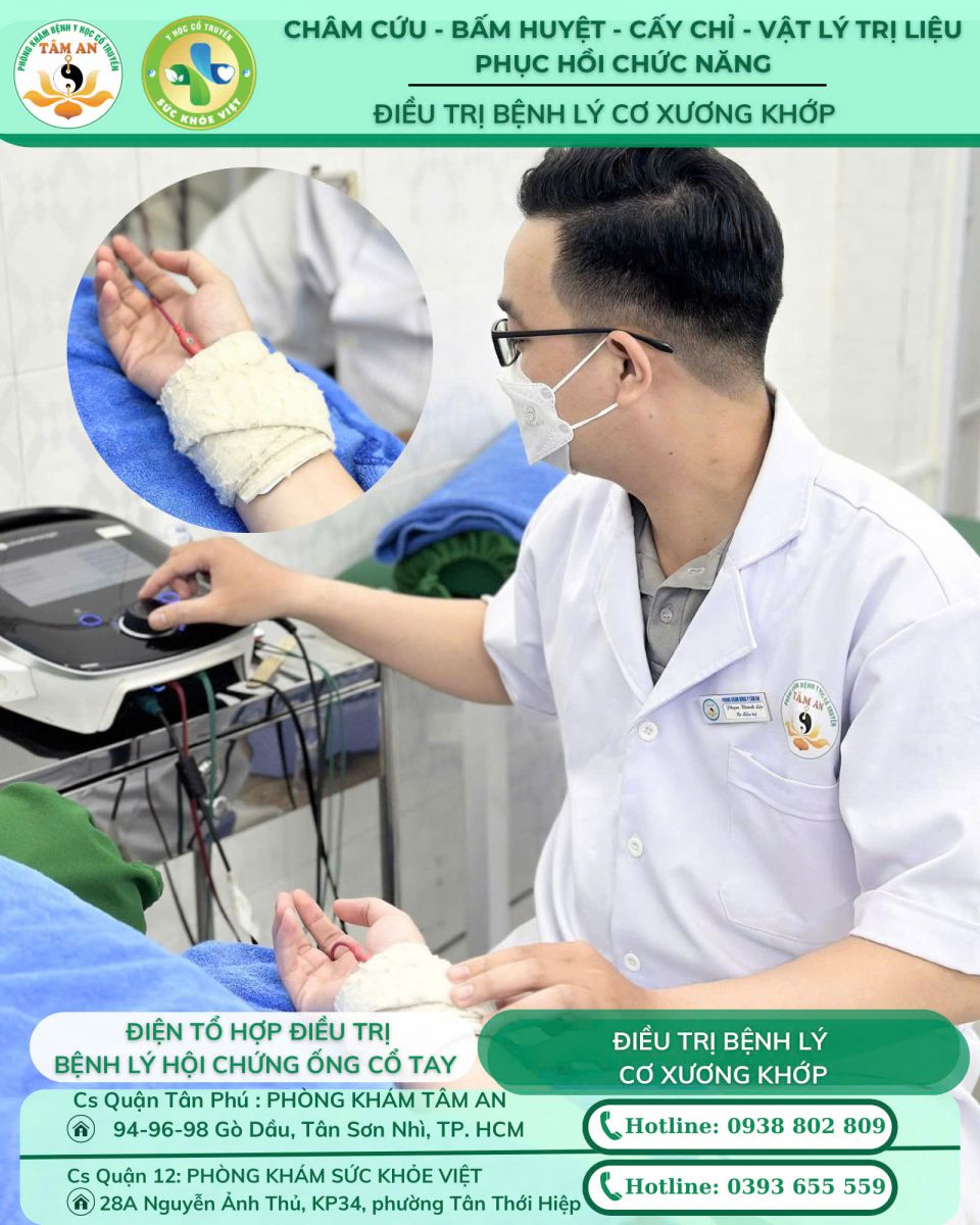 Phòng khám Đông y Tâm An là cơ sở vật lý trị liệu – phục hồi chức năng hàng đầu tại TP. Hồ Chí Minh, chuyên điều trị các bệnh lý cơ xương khớp, thần kinh cột sống bằng phương pháp Đông y kết hợp với vật lý trị liệu hiện đại. Với đội ngũ y bác sĩ chuyên khoa Y học cổ truyền giàu kinh nghiệm cùng hệ thống trang thiết bị vật lý trị liệu tiên tiến, Tâm An mang lại hiệu quả điều trị bền vững – an toàn – không xâm lấn cho mọi bệnh nhân.