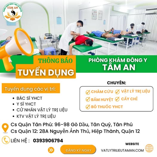 Với nhu cầu tìm kiếm các tài năng trẻ, có đam mê lĩnh vực khám chữa bệnh bằng YHCT kết hợp VLTL Phòng Khám Tâm An tuyển dụng các vị trí sau: