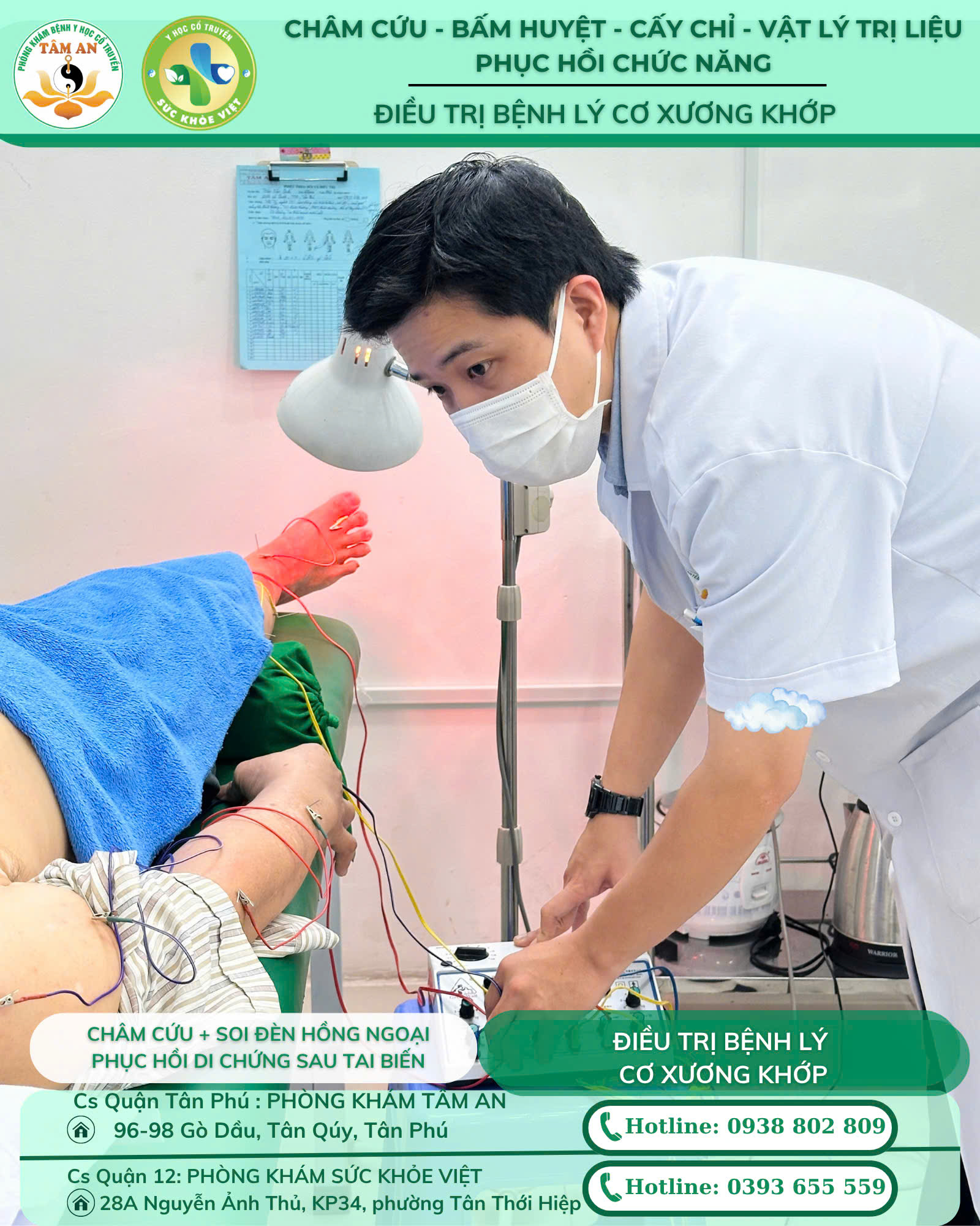 mẹ mình bị tai biến nhẹ tay bên trái yếu và cứng cơ chân bên trái, đi lại rất khó khăn, sau khi xuất viện đã đến Phòng khám Tâm An điều trị để gần nhà và thuận tiện di chuyển, điều trị ở đây được 2 tuần thì mình thấy mẹ mình có những chuyển biến tích cực hơn, nay có thể tự đi lại mà không cần người diều, các bác sĩ ở đây điều trị tận tâm và hướng dẫn bài tập về nhà để tự tập thêm, cảm ơn các bác sĩ Phòng Khám Tâm An.